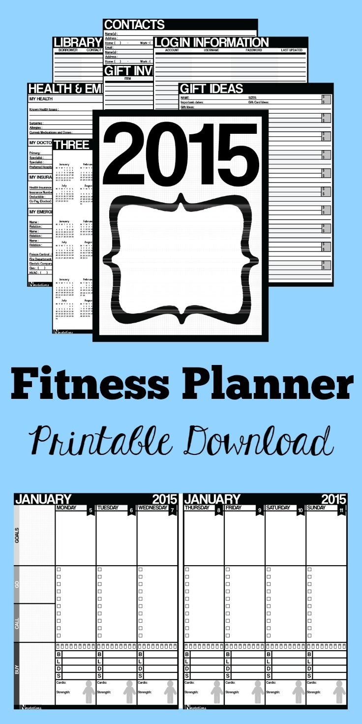 MYLO+ fitness includes an at-a-glance calendar (three years), a health information sheet, a contacts section, a gift planning section, a library sheet for tracking items you loan to friends, and an important login tracker.